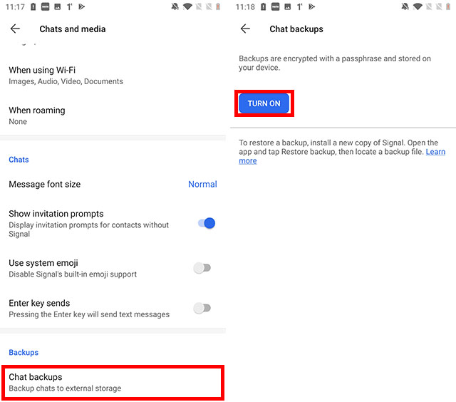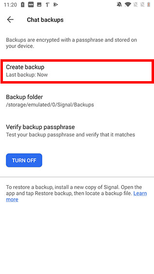 how toEnable Signal Chat backup in Android